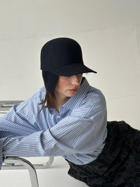 Elegant wool cloche-style hat in a deep navy tone. Features a sculptural silhouette with two styling options for a versatile, refined look. A timeless accessory that elevates both minimal and tailored outfits.